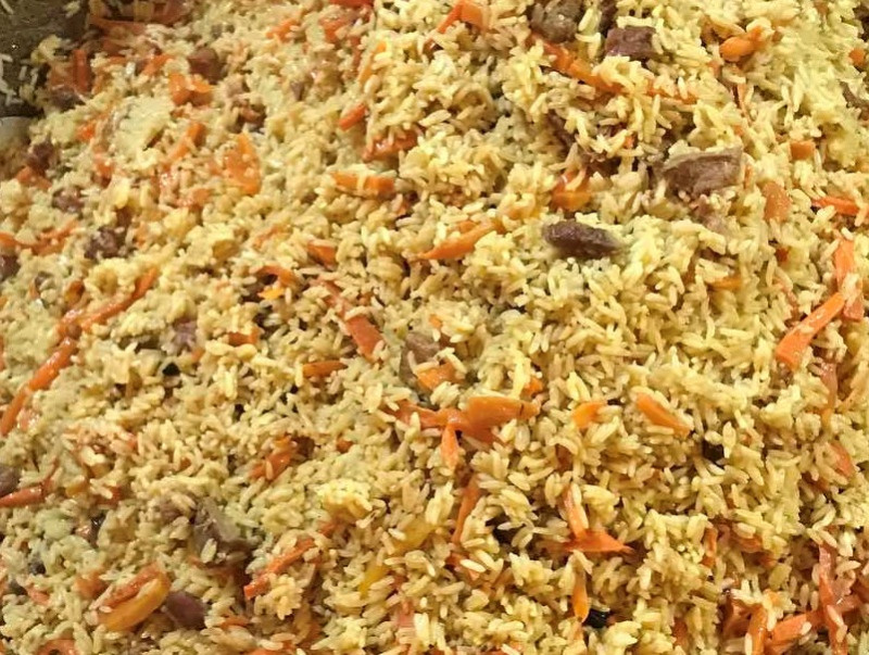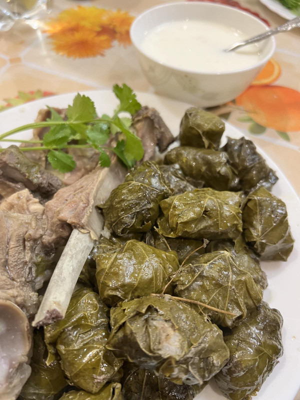 Традиционное азербайджанское жаркое из бараньих субпродуктов (легкие, печень. сердце)