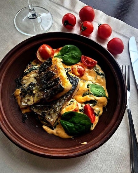 Пеленгас з в'яленими томатами і шпинатом
